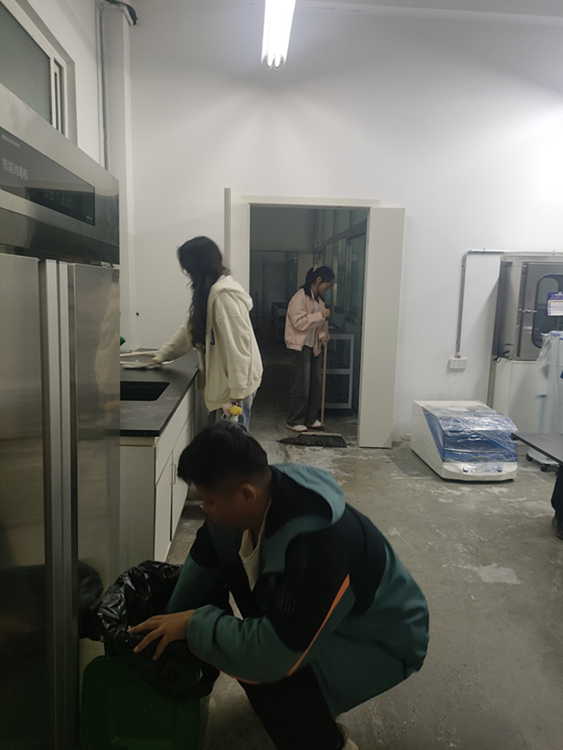 支部的入党积极分子们用自己的实际行动做好实验室的清洁,不仅提升了实验室的环境质量,也增强了同学们的环保意识和安全意识。展现了他们的先锋模范作用,也为其他同学树立了良好的榜样。